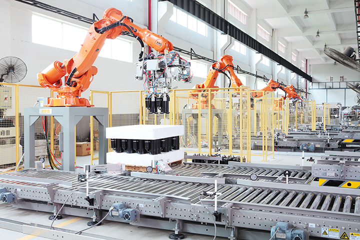 機(jī)器人夾具可以根據(jù)廠家的產(chǎn)能,場地的需要,采取整層抓取,或者單箱或多箱或一列抓取,靈活性大,適用的產(chǎn)能范圍也大。